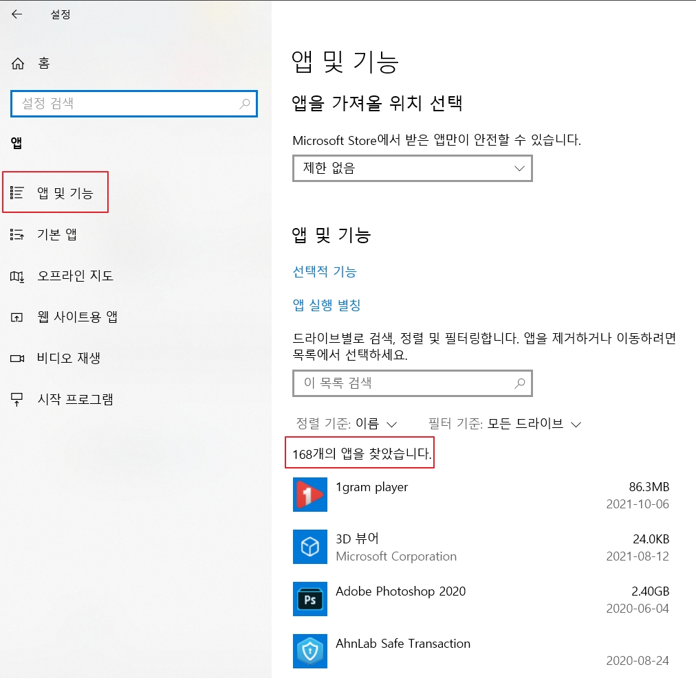 또한 필요해서 설치한 프로그램이라도 오랫동안 사용하지 않고 있는 것이 있다면 제거하는 것이 좋습니다. 내 컴퓨터의 설정 홈으로 들어가서 설치된 앱을 클릭하면 제거할 수 있습니다.